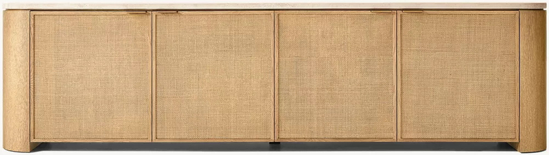 Estrutura: Aparador de quatro portas com uma silhueta linear, baixa - perfil.