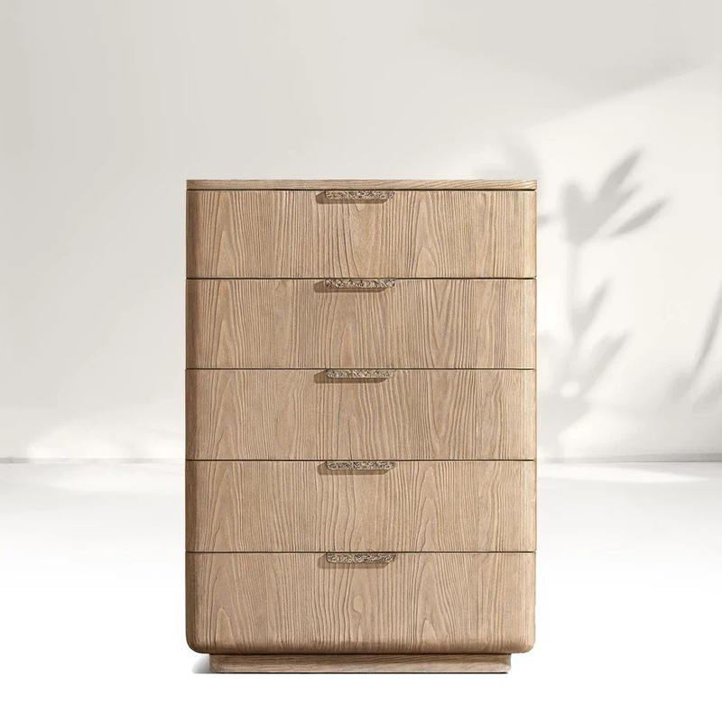Visual: grão de madeira largo + alças de metal → adiciona detalhes aos grandes espaços. Trabalha em salas de estar de luxo (amacia couro/mármore) ou quartos modernos (combina com camas flutuantes).