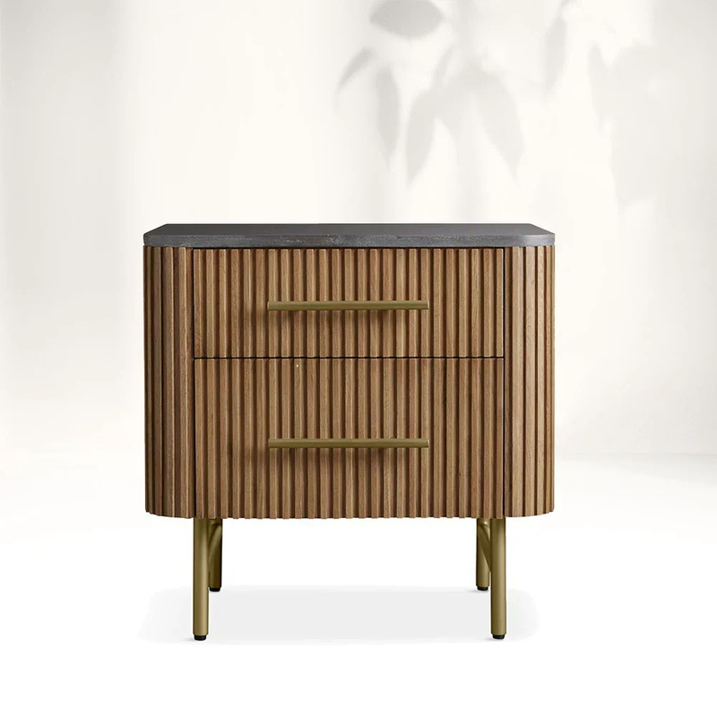 Textura exclusiva: O design da faixa vertical na superfície do gabinete é engenhoso, adicionando camadas ricas e um efeito tridimensional ao todo. Isso quebra a monotonia convencional, fazendo com que a mesa de cabeceira mostre personalidade única dentro da simplicidade.