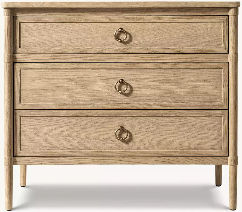 As bordas do armário e as bordas das gavetas são polidas à mão para suavizá-las, criando um formato de arco natural e redondo. Isso evita o risco de arestas vivas causadas por impactos e torna o toque mais quente e confortável. Os detalhes do polimento do arco variam ligeiramente devido aos hábitos do operador artesanal, marcando a singularidade dos produtos artesanais.