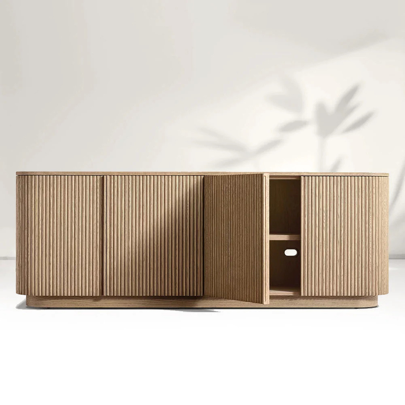 Material de alta qualidade: Feito de carvalho branco sólido durável, este armário de TV é construído para durar, mantendo sua beleza natural.