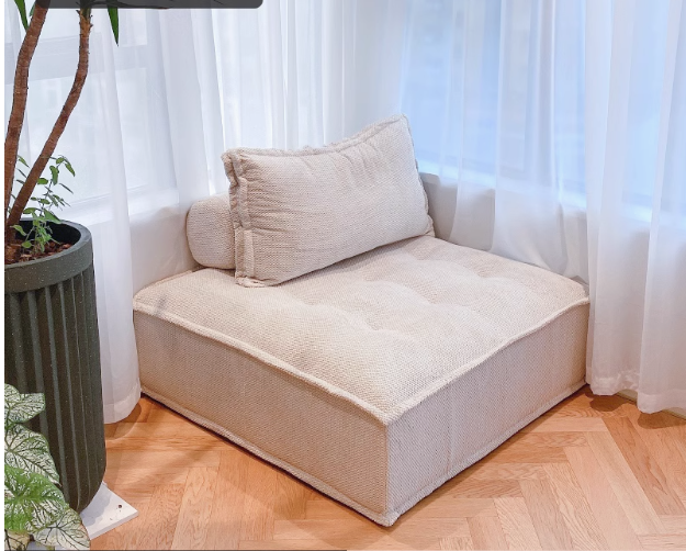 Afunda suavemente no estofamento ao sentar, com ajuste natural para quadris e costas; O design sem braço permite movimento irrestrito, ideal para se enrolar ou deitar de lado